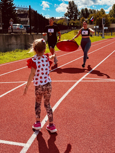 Сегодня наши воспитанники вместе со своими семьями приняли участие в семейных эстафетах на «Кубке мечты». Семьям предстояло пробежать несколько этапов комбинированной эстафеты: бег с барьерами, стрельба из винтовки, бег с тюбингом, бег до финиша в составе всей семьи. Следующим заданием была спортивная викторина, далее совместный сбор большого пазла, и завершался спортивный конкурс метанием диска в корзину.